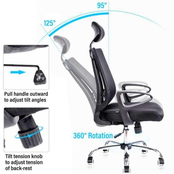 Deli-4905 Office Chair – Ergonomic Mesh Design for 24/7 Comfort|“Ergonomic Mesh Office Chair with Adjustable Headrest & Seat. Breathable design for all-day comfort. Perfect for hotel lobbies & offices.”