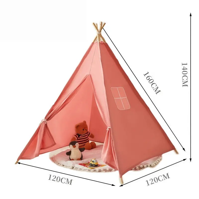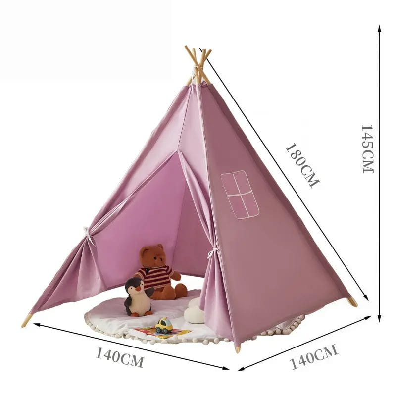 Premium Cotton Canvas Kids Teepee Tent with Solid Wooden Poles for Luxury Resort Family Suites